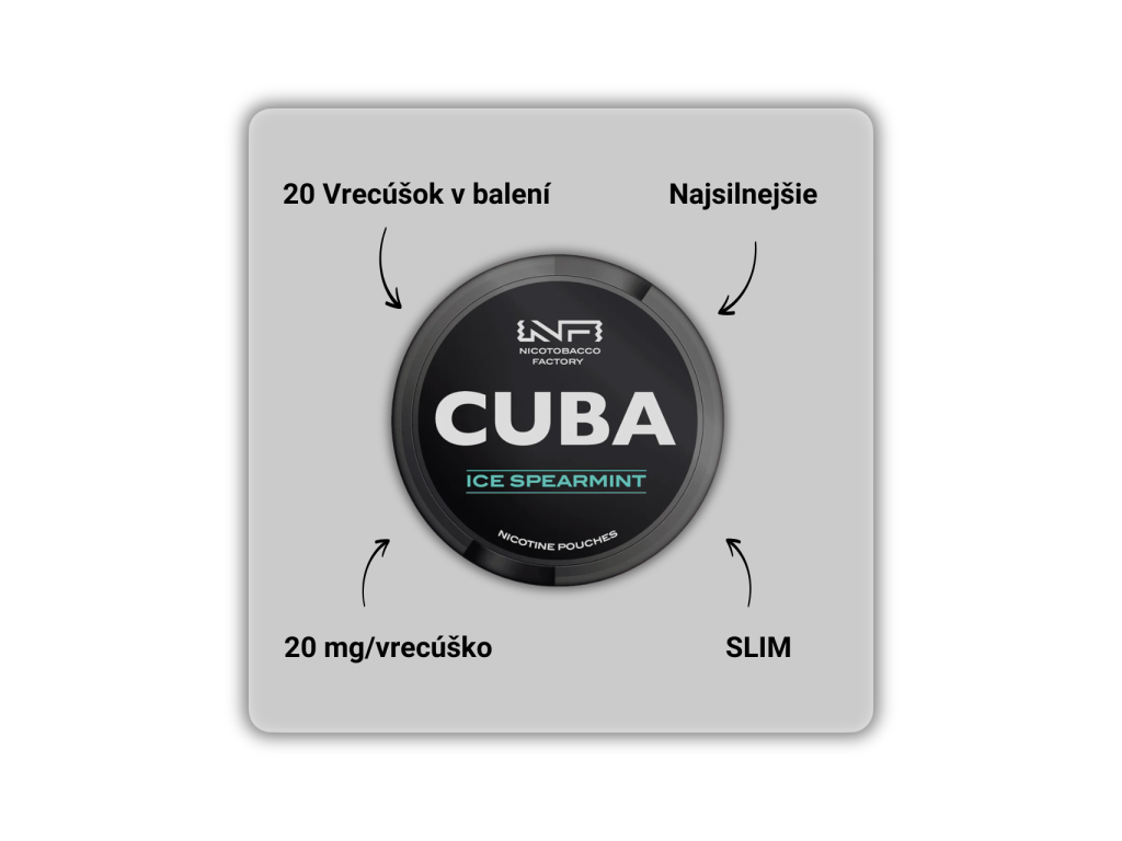 Nikotínové vrecúška CUBA Black Ice Spearmint s výraznou mätovou chuťou a chladivým efektom. Black edícia je intenzívna a určená pre skúsených užívateľov!