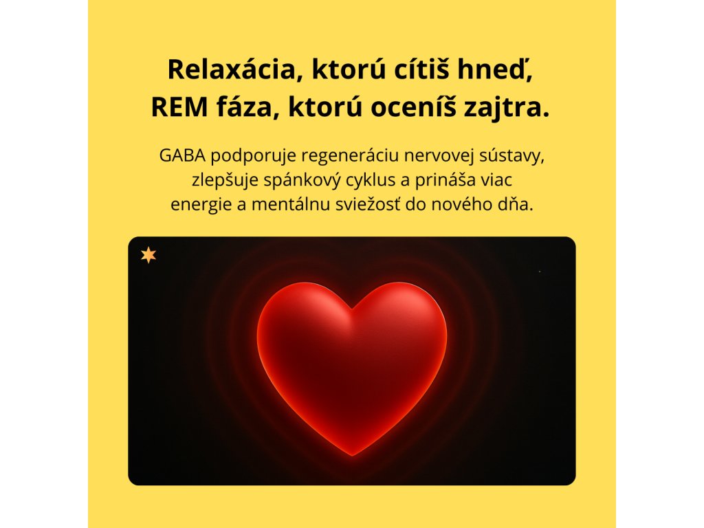 Noxium GABA je prémiový doplnok pre tvoj nervový systém a kvalitný spánok. GABA je hlavný upokojujúci neurotransmiter v mozgu, ktorý prirodzene znižuje napätie a podporuje relaxáciu.