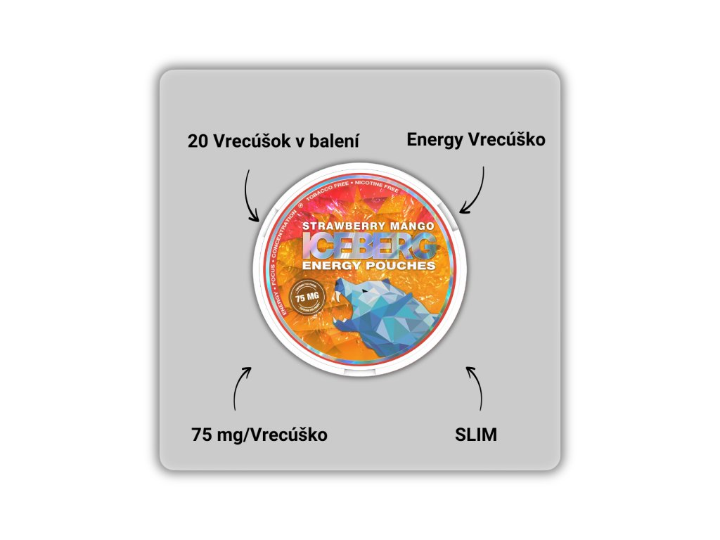 Kofeínové vrecúška od legendárnej značky ICEBERG s tropickou kombináciou sladkých jahôd a šťavnatého manga. Spojenie ovocných chutí vytvára svieži a energický zážitok, ktorý si obľúbiš pri akejkoľvek príležitosti. Každé vrecúško obsahuje 75 mg kofeínu, takže ti dodá okamžitú energiu a koncentráciu počas náročného dňa.