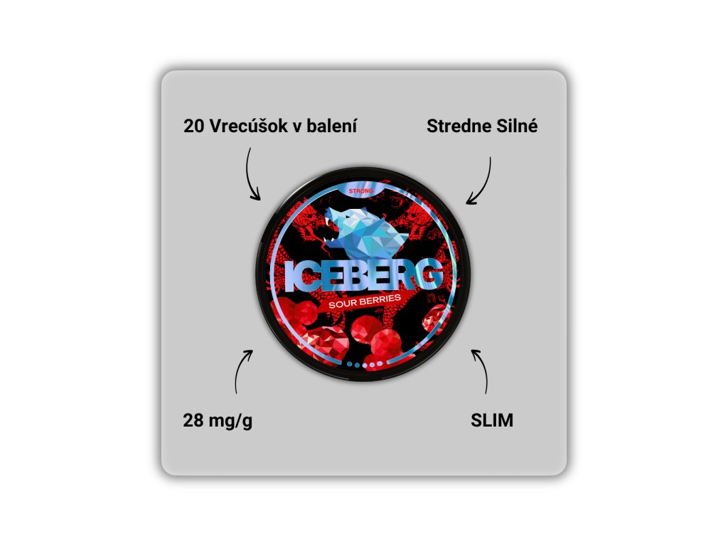 Nikotínové vrecká ICEBERG Strong Sour Berries prinášajú intenzívnu chuť kyslastých lesných plodov v novom zložení. Každé vrecko obsahuje 16,8 mg nikotínu a v balení ich nájdeš 20 kusov vo formáte SLIM. Ak hľadáš ovocnú, sviežu a výrazne kyselkavú príchuť so silnejším účinkom, Strong Sour Berries je pre teba tá pravá. Zaži legendárny ICEBERG v novej sile!