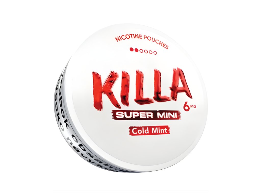 KILLA Super Mini Cold Mint je nový formát oproti klasickému Mini Cold Mint obsahuje menšie vrecúška, nový profil a chladivú mätovú príchuť. Super Mini prevedenie je nenápadné pod perou a v balení nájdeš 20 vrecúšok.